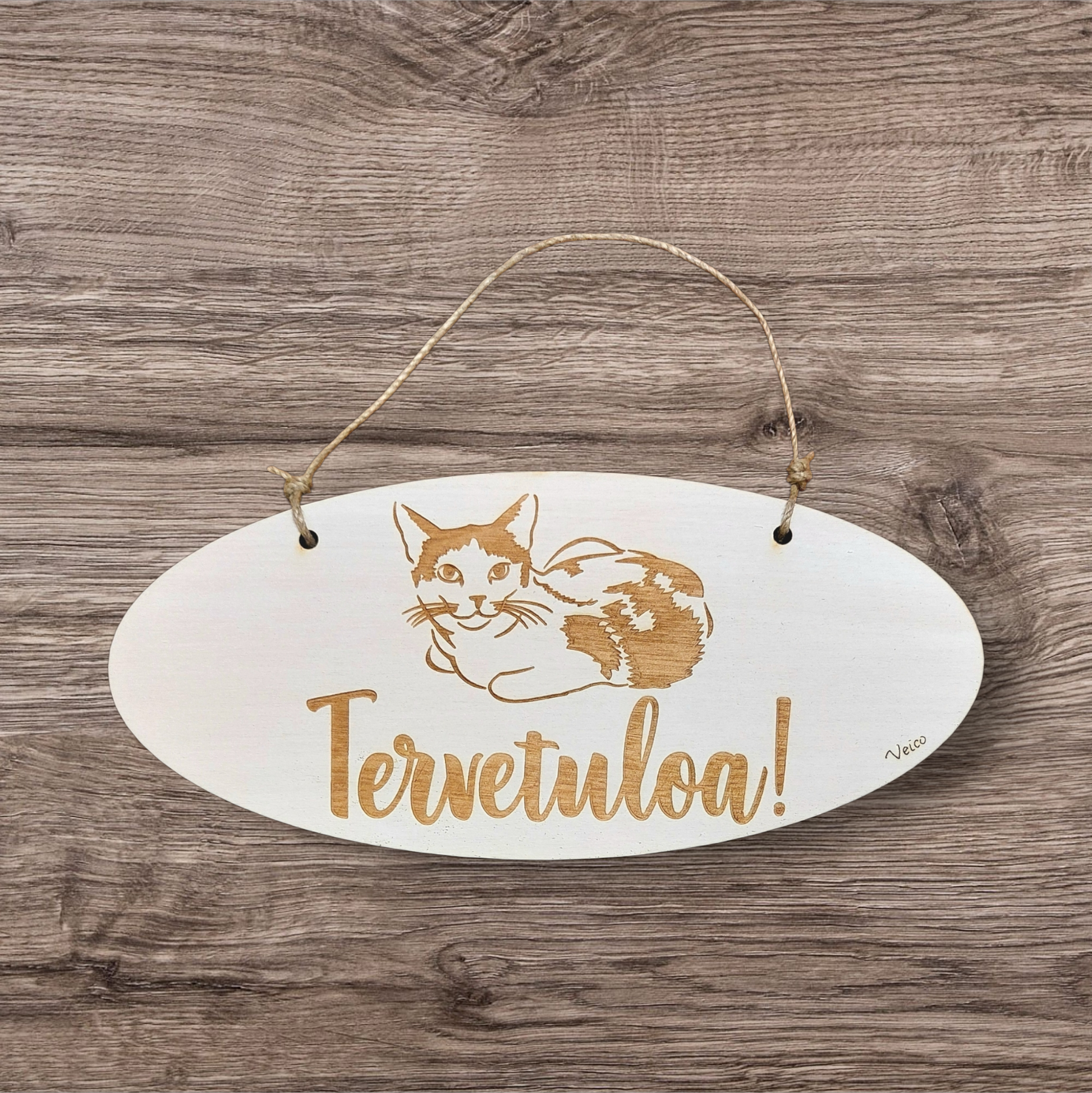 Kissakodin oviopaste, lähes pakollinen hankinta jokaiselle kissanomistajalle. Materiaali kotimaista koivua.