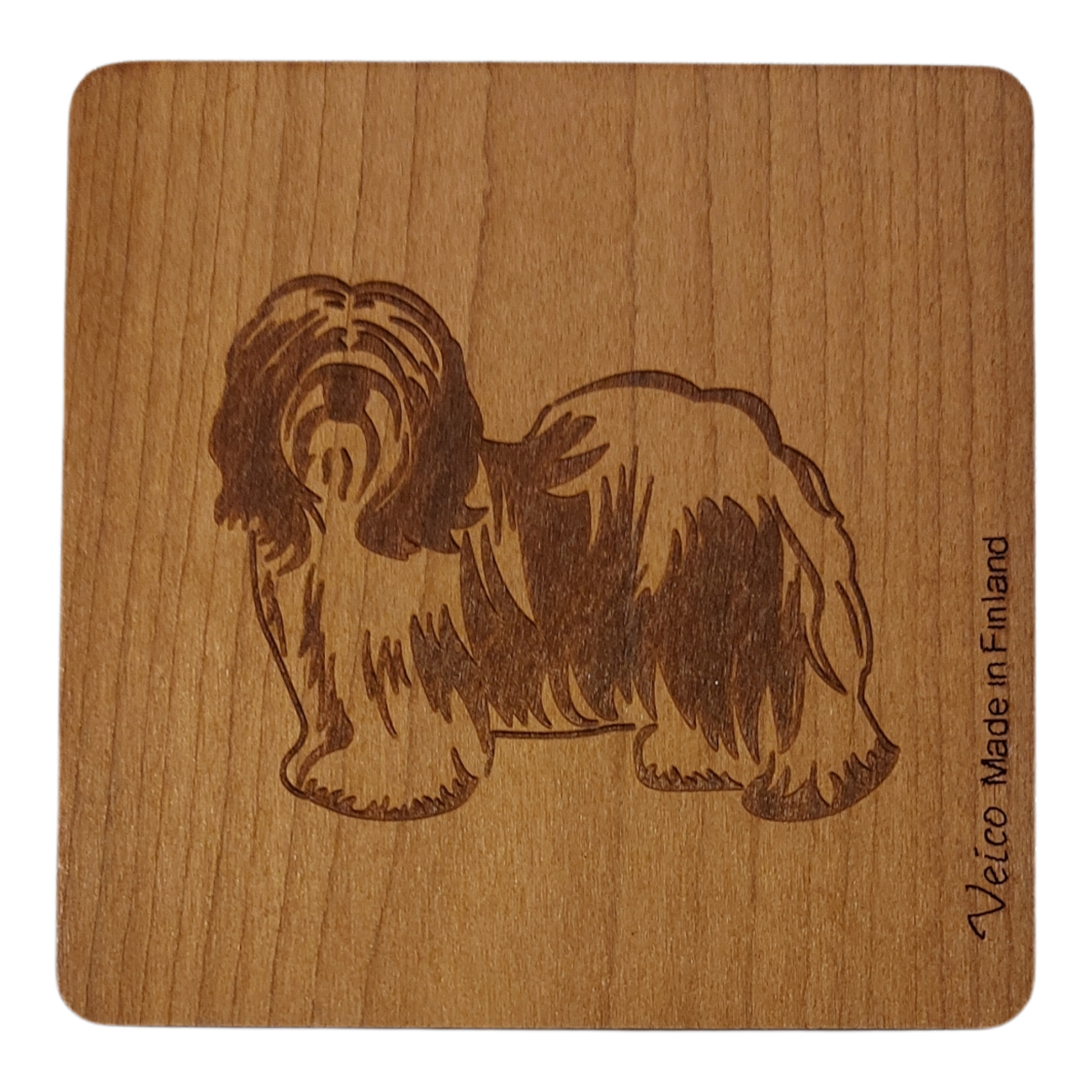 Koirarotuaiheinen alunen käytettäväksi esim. mukin, kupin, juomalasin tai tuopin alusena.