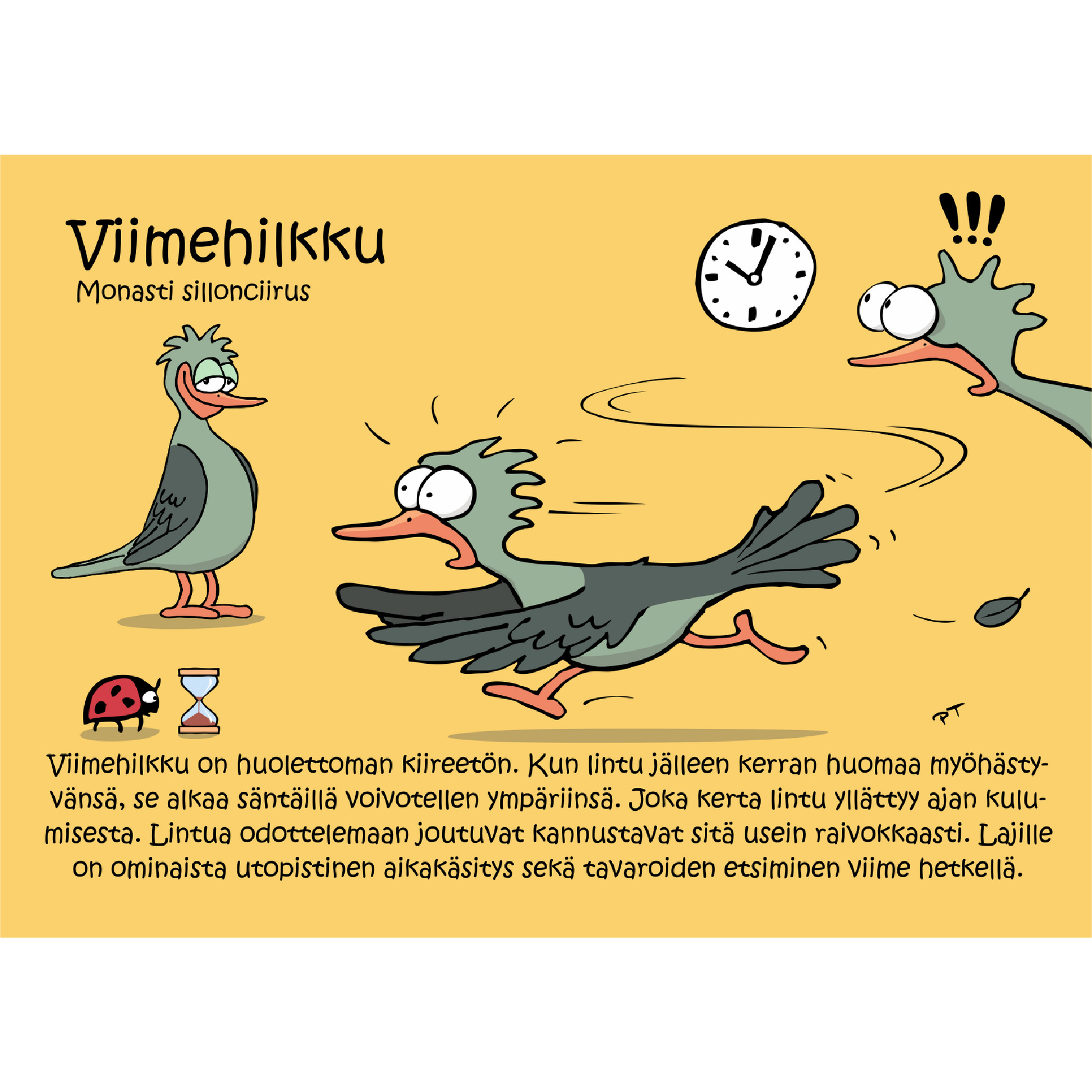 Luonnelinnut paljastavat ihmisten luonteenpiirteitä lintukirjamaisella otteella. Persoonallisten lintuhahmojen takana on rovaniemeläinen Petri Törmänen, joka piirtää ja kirjoittaa havaintonsa ylös ja tarkkailee niiden käyttäytymistä.